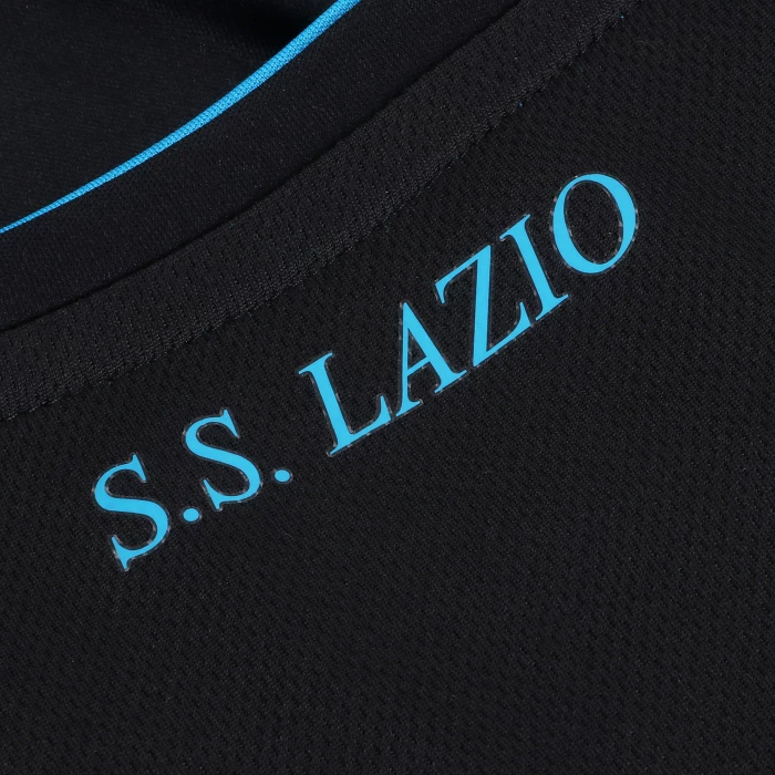 SS Lazio Away Jersey for the season 22/23. \x0d\x0aBlack uniform with ocean blue trim. \x0d\x0aThe jersey features multicolored gradient graphics inspired by the Olympia eagle as it soars through the skies of the Olympic Stadium during evening matches. \x0d\x0a